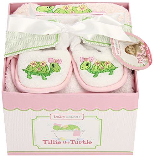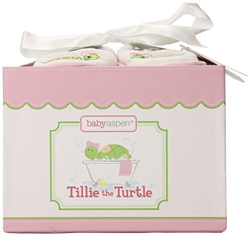 Baby Aspen, Tillie the Turtle Four-Piece Bathtime Gift Set, Pink, 0-6 Months