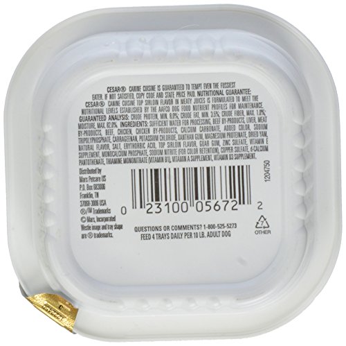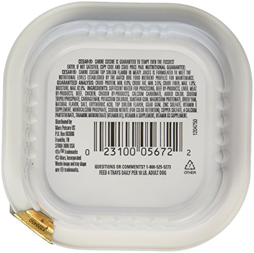 -. Binding : Grocery -. Brand : Dogswell -. EAN : 0023100056722 -. Feature : This product adds great value / Product is highly durable and easy to use / This product is manufactured in China / Made from the House of dogswell, llc / Quality ingredients used / Suitable to be used for pets -. Label : Cesar Pet Food -. Manufacturer : Cesar Pet Food -. Model : 023100056722 -. MPN : 023100056722 -. PackageQuantity : 1 -. PartNumber : 023100056722 -. ProductGroup : Grocery -. ProductTypeName : PET_SUPPLIES -. Publisher : Cesar Pet Food -. Size : One Size -. Studio : Cesar Pet Food -. Title : Dogswell Mars Cesar Cuisine Top Sirloin 24/3.5 oz Pet Food, 1 Pack, One Size -. UPC : 023100056722