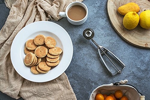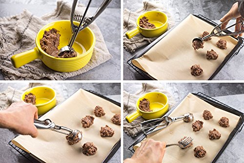 - SAVE YOUR TIME -- A simple squeeze releases cookie dough, makes scooping cookies a breeze! This perfect scoop glides easily and does not require intense effort. And the grip fits comfortably into left and right hands.