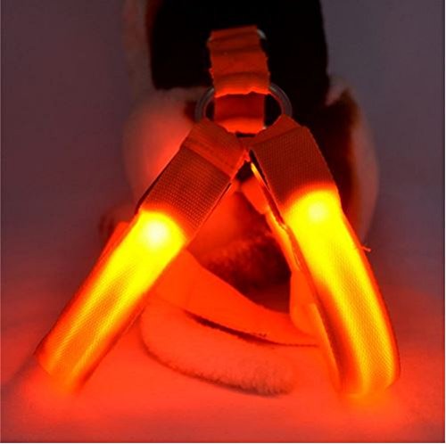 Studio : Quesonic Publisher : Quesonic Binding : Misc. Product Description Material: Nylon Made from 100% tough Nylon strap and rain resistant electronics Size: Small(32-40cm) Medium(38-50cm) Large(43-60cm) X-Large(55-67cm) All measured by hand, please allow about 1-inch difference. Product Description: Adjustable buckle and hand grip webbing make the Harness durable and comfortable for your loved pets. Shinning in the dark makes your lovely pet very unique. This is an excellent way to ensure both you and your pet's safety. 3 Modes: Steady, Fast Flashing, and Slow Flashing (you can change the models through the ON/OFF Button) Runtime: 60-80 hours continuously. Power by 4 x CR2032 button batteries. Easy to use: Simply pushing the control button makes the light ON/FLASH/OFF. It is an excellent way to ensure both you and your dog and other pets safe during walking. Bright light can be seen from far away, helps to avoid the dog run around. Easy and comfortable to wear and remove, it will not hurt your pet. This product is suitable for dark environment or you walk with your dog at night, by super-bright. LED light flashes. As for a security warning, pet walking at night easily to be found, to prevent the occurrence of some unexpected events. Products design in fashion, by manual control switch, suitable for pets to use at day or night. Package Included: 1x Dog Harness