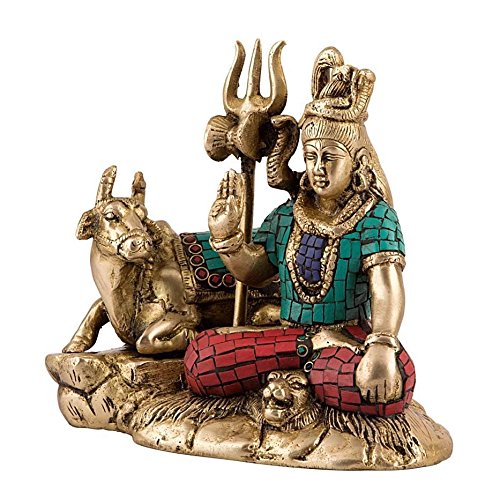 - Shiva Statue Hindu Lord Shankar is made with Heavy Quality Brass and colorful statue God idol.