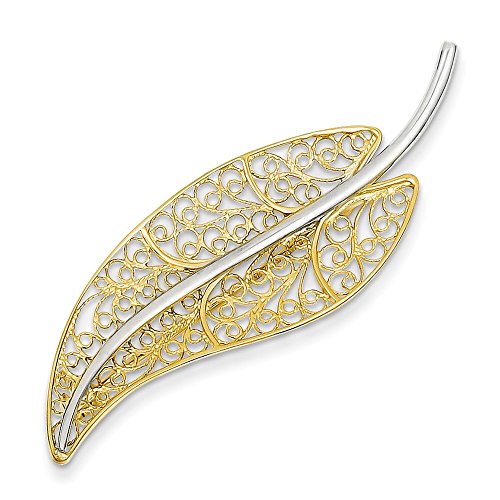 -. Title : 14k & Rhodium Filigree Leaf Pin