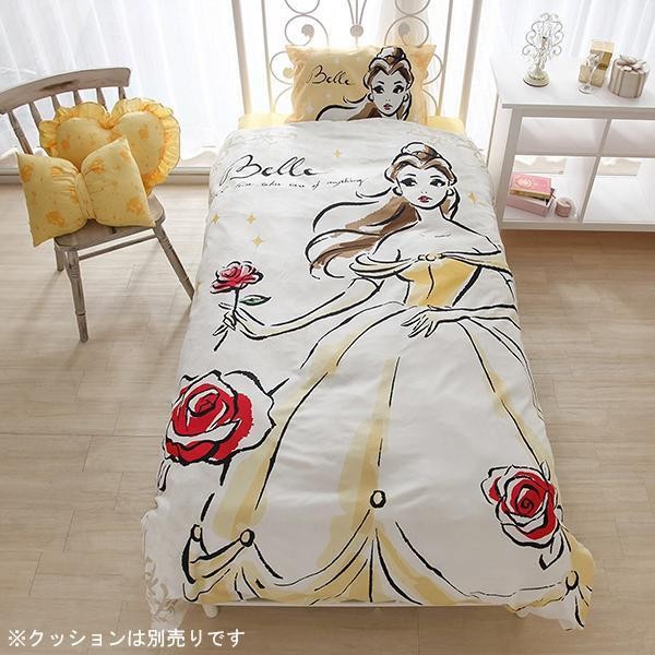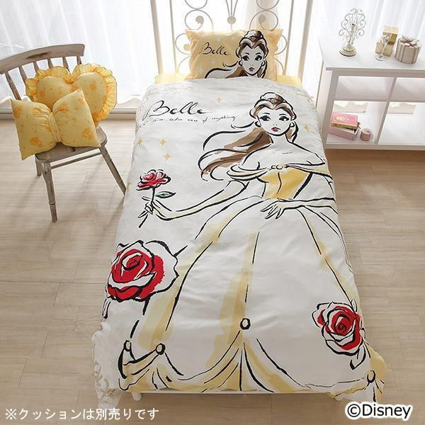「美女と野獣」ベルの世界観が表現されたエレガントなカバーリング。黄色をメインに掛カバーと枕カバーは大胆なベルのプリントで一気に部屋が明るくキュートになりますね♪シーツはふとん・ベッドどちらでもご使用いただける共通用です。 |