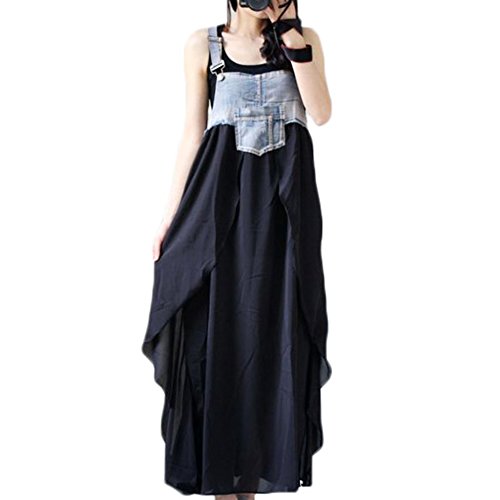 -. Title : Snoneレディース サロペットワンピース ストラップ デニム風 シフォン切り替え マキシ丈 ジャンパースカート デニムワンピース