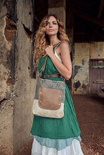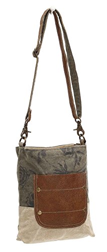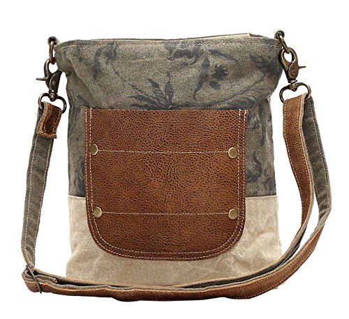Myra Bags Leather Pocket Upcycled Canvas Shoulder Bag S-0945