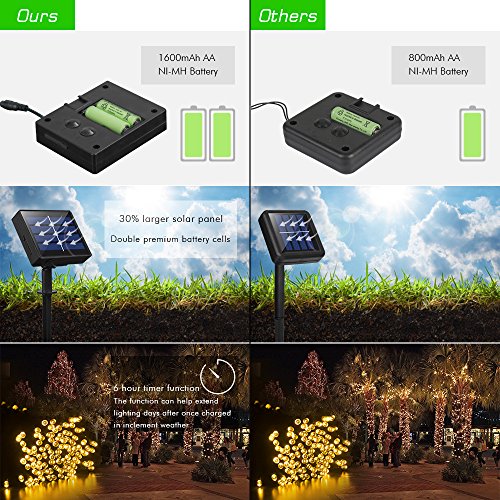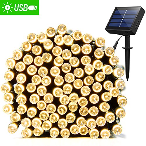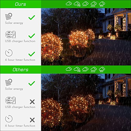 Solar String Lights 72ft 200 LED Fairy Lights, Ambiance lights for Outdoor, Patio, Lawn,Garden, Home, Wedding, Holiday, Christmas Party, Xmas Tree decoration,waterproof/Timer/USB Charge (Warm White)