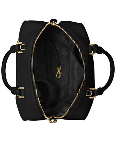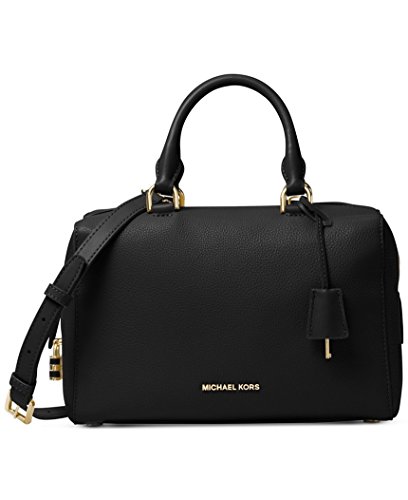 -. Brand : Michael Kors -. Color : Black -. Department : womens -. EAN : 0190049465523 -. Feature : 11.5"W x 8"H x 5-1/2"D / Interior features lining, 1 zip pocket, 3 open pockets, 1 cellphone pocket and key clip / 4"L double handles; 19-1/4" to 21-3/4"L adjustable strap top Zip closure / Exterior features gold-tone hardware, / Small pebble leather -. ProductGroup : Shoes -. ProductTypeName : HANDBAG -. Title : Michael Kors Kirby MEDIUM Satchel pebble leather Black/Gold -. UPC : 190049465523