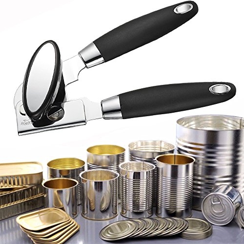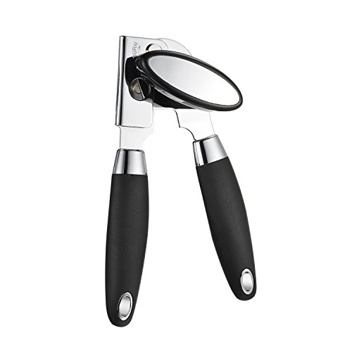 AUYE Can Opener-Heavy Duty Stainless Steel Good Soft Grips Handle-Easy Turn Knob-Safety Smooth Edge-Works Great
