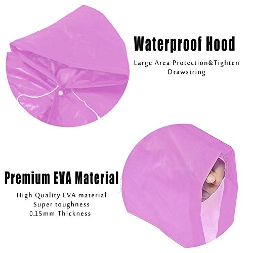 -. Feature : ✅RAIN PONCHO:0.15mm thickness;raincoat size:43.3x21.6inch;suitable height range:3.6 - 4.7 feet. / ✅SAFETY & ECOFRIENDLY MATERIAL:EVA with PVC,an enviromentally friendly material.Our raincoat is non-toxic,no smell and harmless / ✅LIGHTWEIGHT & PORTABLE:Come in a small plastic bag,easy and convenient to carry,can be folded easily and packed in your backpack. / ✅DRAWSTRING HOODIES:The hoodie of children rain poncho has drawstring for tightening.It can help to protect your hair to keep them dry / ✅SATISFACTION GUARANTEE:30-Days Money Back apply to all rain poncho.Ideal for traveling,hiking,camping,theme parks,sporting events and other outdoor activitives.