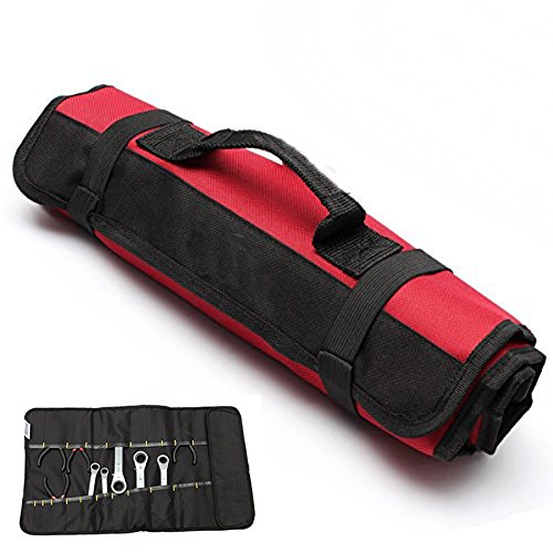 Yosoo Multi-Purpose 22-Pocket Reel Rolling Tool Bag Plier Screwdriver Spanner Carry Case Pouch Bag (Red)