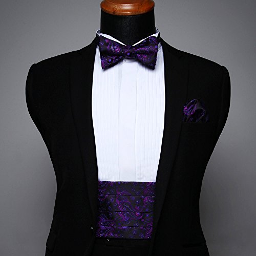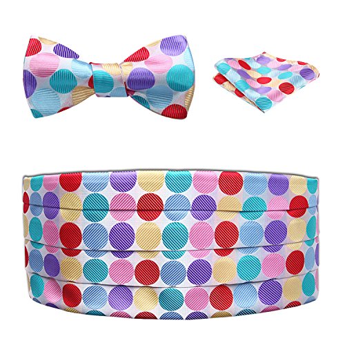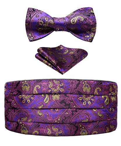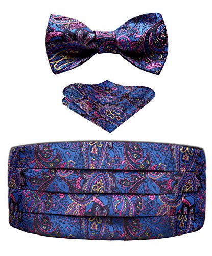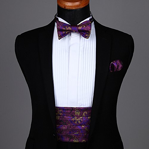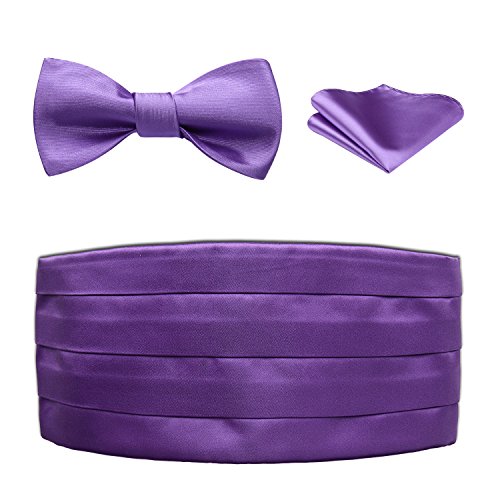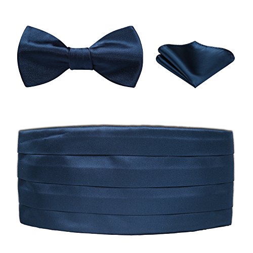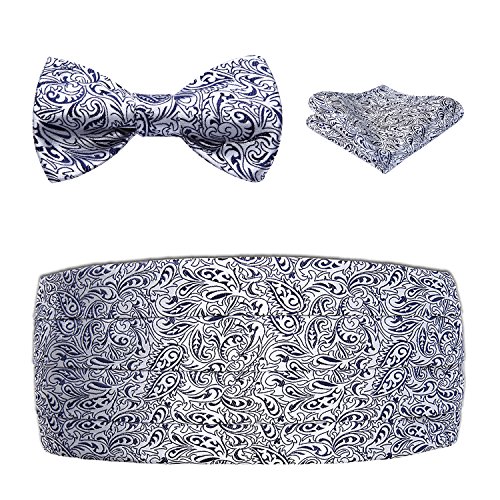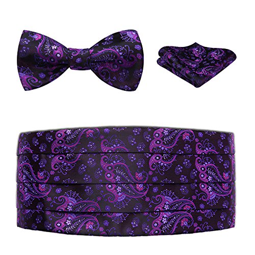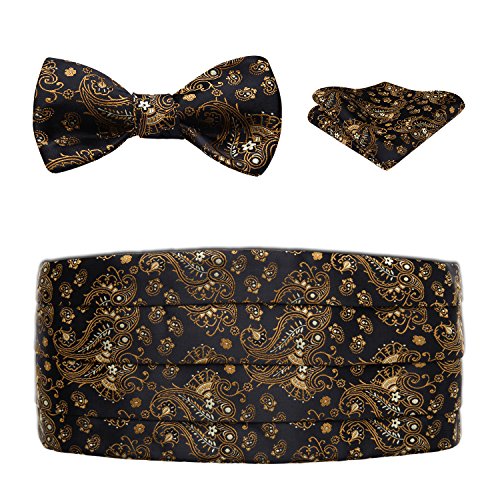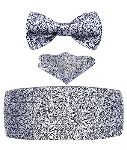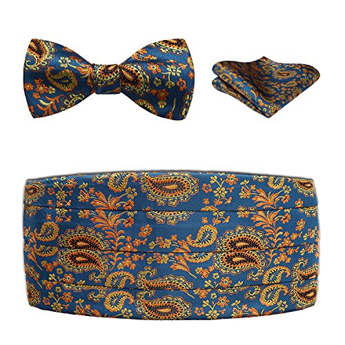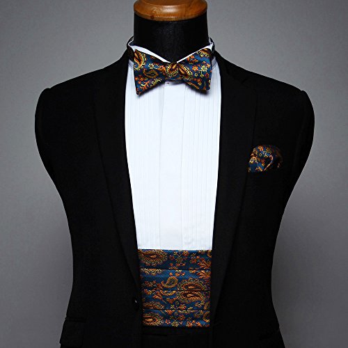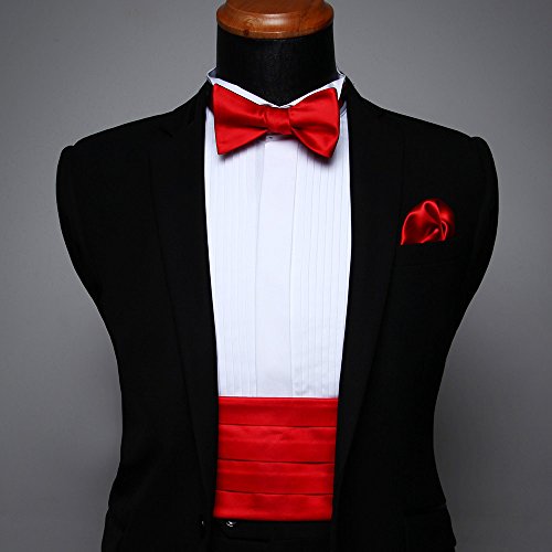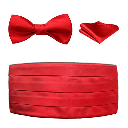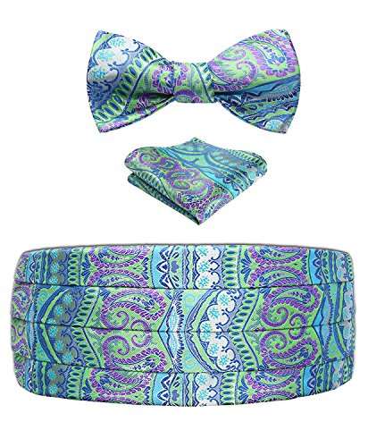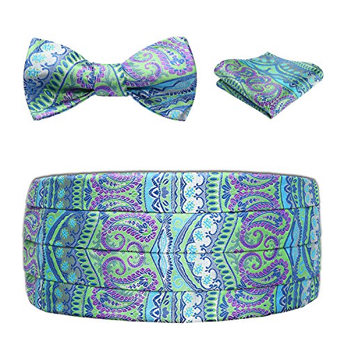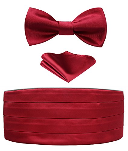 | Men's Formal Cummerbund Bowtie Pocket Square Set-Various Colors and Patterns |