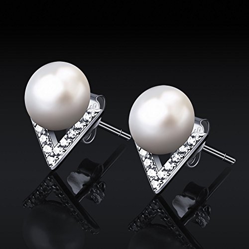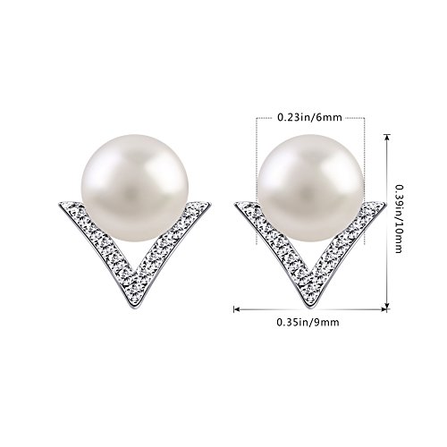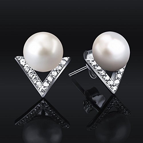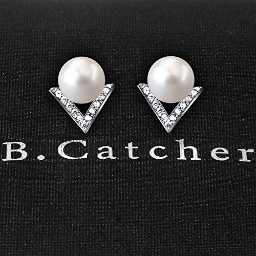 B.Catcher Perlen Ohrringe Damen Ohrstecker 925er Silber Ohrschmuck V-formig Susswasser Zuchtperle 5A Zirkonia Schmuck Weihnachten Geschenk