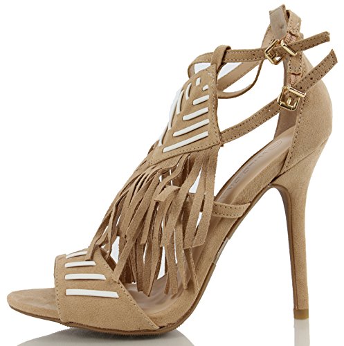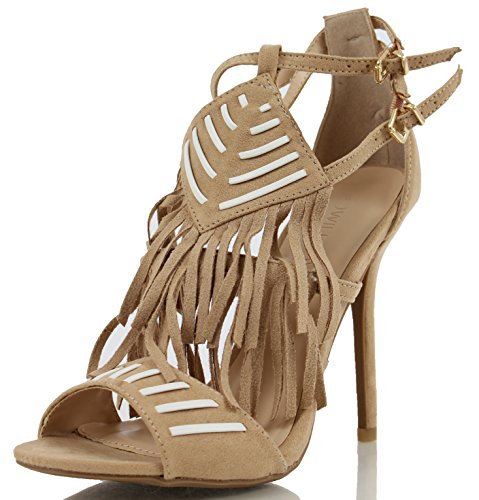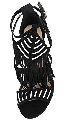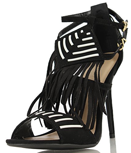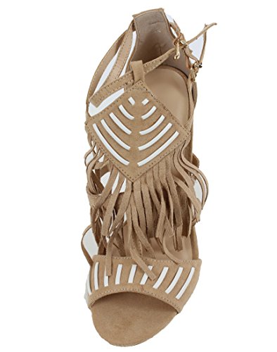 Wild Diva Women's Adele 206 Open Toe Aztec Fringe High Heel