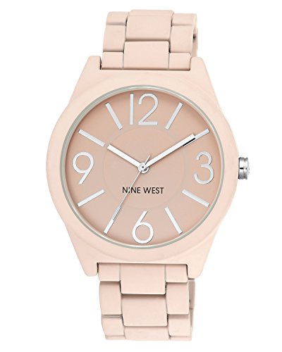 Ensure you're tastefully on time with Nine West White Textured Bracelet Watch. Large goldtone numbers and markers pop against a round white case, while a matching bracelet band completes the chic look of this women's watch.Feature