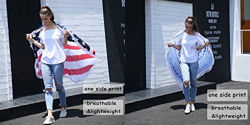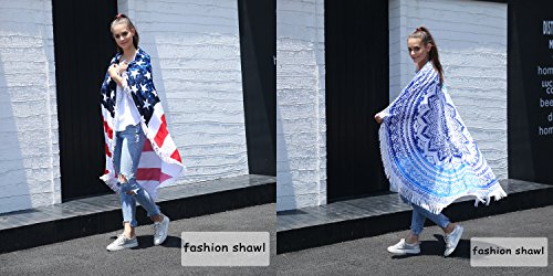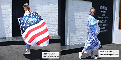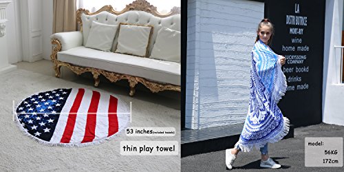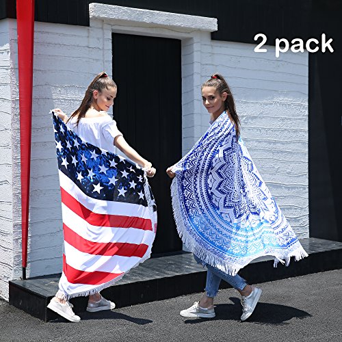 2 PCS Popular Round beach cover, Summer beach must-have,THIN cotton LightWeight Beach Towel Round Yoga Mat (blue)