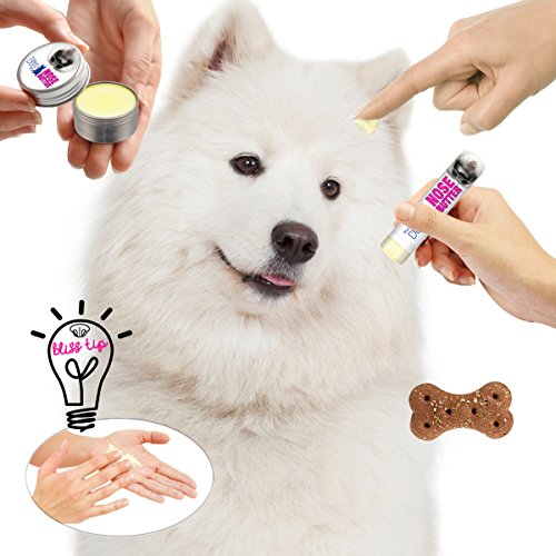 Many dogs have a tendency toward a dry, crusty nose condition, frequently called nasal hyperkeratosis. While any dog can have this condition some breeds have even more of a predisposition toward dry noses; French Bulldogs, Boxers, Pugs, Bulldogs, most Bully type and Mastiff breeds and their mixes. NOSE BUTTER was developed specifically for this condition. NOSE BUTTER For Dry or Crusty Dog Noses. All natural, rich moisturizers soften and smooth your dog's dry, crusty, cracked nose. NOSE BUTTER is individually handcrafted in far northern Minnesota (yes, it is science fiction cold in the winter) using all natural and organic good stuff: shea butter, olive oil, castor oil, avocado oil, almond oil, coconut oil, beeswax, cocoa seed butter, a dash of essential oils and love. NOSE BUTTER USAGE: DAB a bit onto your dog's nose 1-3x a day for 2-3 days (until nose improves) and then as needed for maintenance (usually1-2x a week). DISTRACT with a treat (keeps them from licking NOSE BUTTER off while it moisturizes).DONE! Complete directions, tips, hints and Dog Nose info is available.Feature