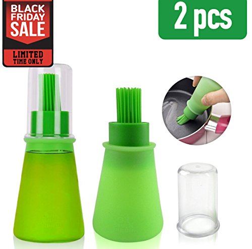 COMPACT DESIGN - This bottle basting brush only measures at 4.8"x2" with the capacity of 2 oz/60 ml. It has an anti-dust lid which is perfect for a picnic or having delightful BBQ night! Get the best value of 2 pcs silicone oil dispenser brush! Order Oil Bottle Brush (TM) NOW before we run out of stock!