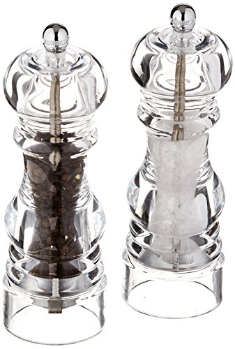 - Set includes 7-inch crystal clear acrylic salt and pepper mill