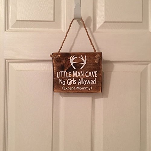 -. Brand : Millies Attic -. Color : brown -. IsAdultProduct : 0 -. ProductGroup : Guild Product -. ProductTypeName : GUILD_HOME -. Size : Small -. Title : Brown Little Man Cave No Girls Allowed ™ Antler Door Sign