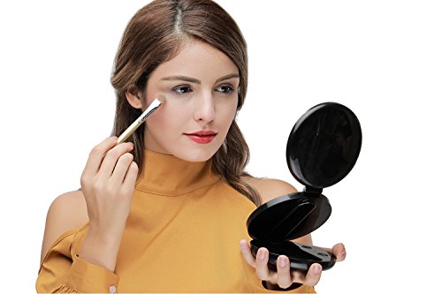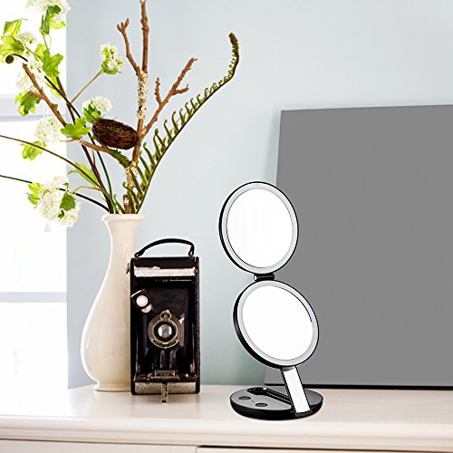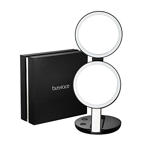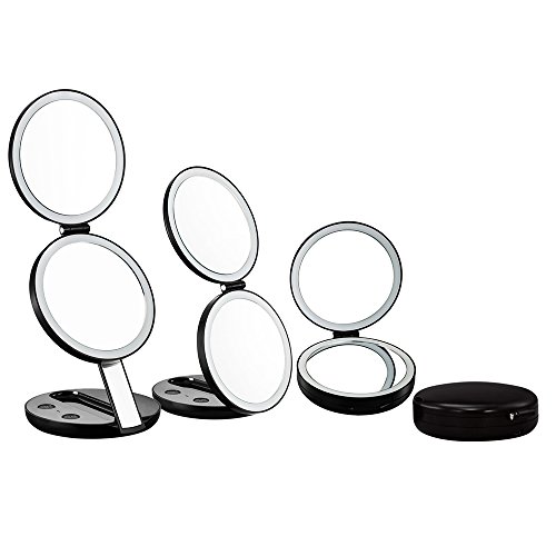 LIGHTED TRAVEL MAKEUP MIRROR, BUTYFACE 1X AND 7X MAGNIFYING MAKEUP MIRROR WITH LIGHTS, COMPACT FOLDING HANDHELD TRAVEL MIRROR WITH LED LIGHTS, CHARGING BY BATTERIES OR USB PLUG IN