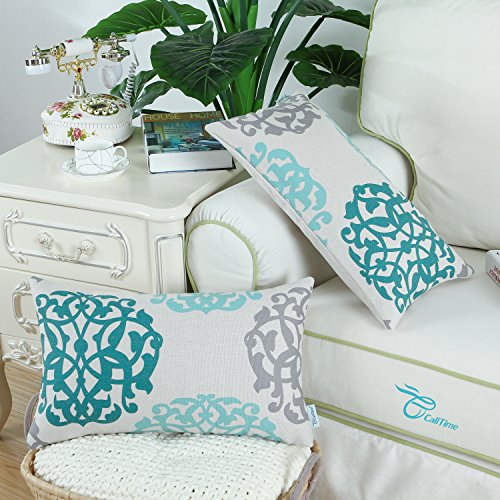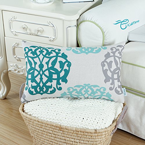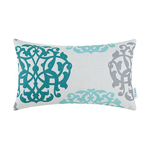 CaliTime Cushion Cover Bolster Pillow Case Shell Three-tone Floral Geometric 12 X 20 Inches
