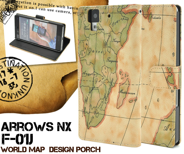 レトロな世界地図デザインがオシャレな、arrows NX F-01J用ケースポーチ!