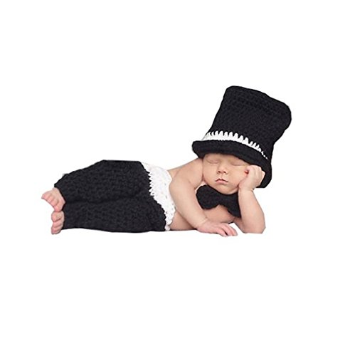 Eyourhappy Handmade Baby Photography Prop Costume Crochet Gentleman Hat Bowknot Pant Black