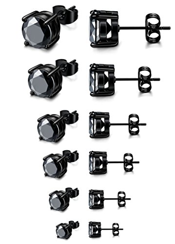 -. Title : Jstyle 6 Pairs Stainless Steel Mens Womens Stud Earrings Cubic Zirconia Piercing Black 22G