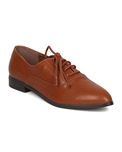 -. Title : Breckelle's Women Leatherette Pointy Toe Loafer - Work, Everyday, Basics - Lace Up Flat - GG49