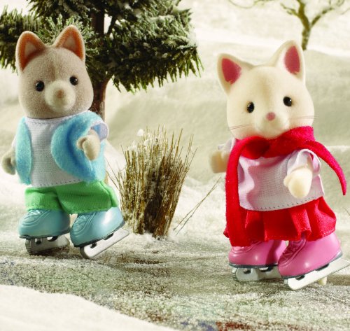 Jump and swizzle at the ice rink with the Sylvanian Families Ice Skating Duo. Famous Sylvanian skaters Jayne Golightly and Christopher Tailbury always dazzle the crowds when they take to the ice. Each of these two poseable cats comes with warm clothes and ice skating boots.