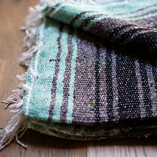 Mexican Blanket Authentic Falsa Thick Soft Woven Acrylic Serape for Yoga or as Beach Throw, Picnic, Camping, Travel, Hiking, Adventure PINK and MINT