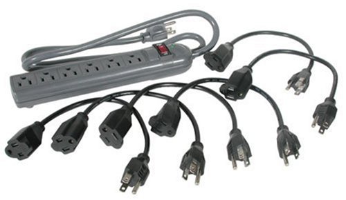 C2G/Cables to Go 35549 6-Outlet Surge Suppressor with Six Outlet-Saver Power Extension Cords (1 Foot)