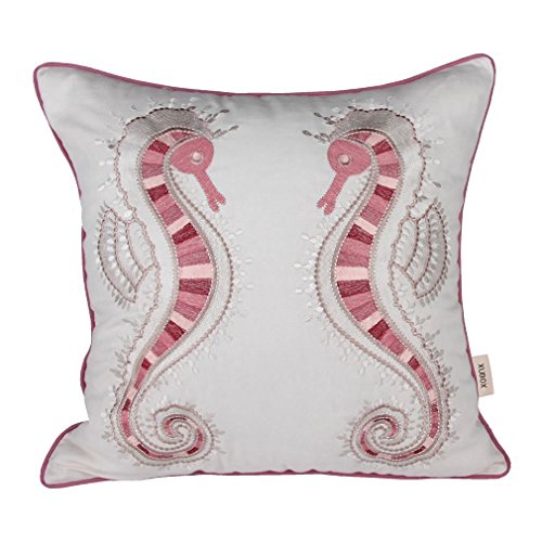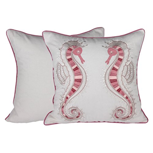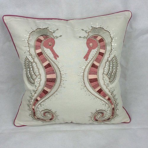 Lily Cindy Cotton Linen Decorative Throw Pillow Cushion Covers Pillowcase Shell Red Seahorse Embroidery 18" X 18"