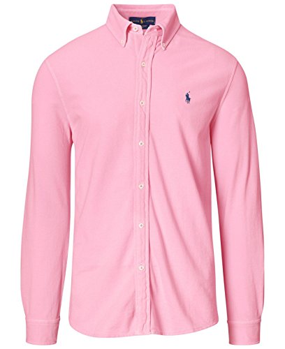Polo Ralph Lauren Men's Long Sleeve Featherweight Cotton Mesh Polo Shirt (X-Small, Pale Rose)