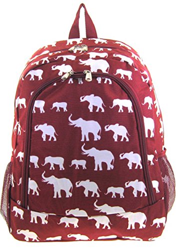 -. Brand : scarlettsbags -. Feature : Size : 12w x 16h x 6d in. / Material : Canvas / Zipper Closure / Two Mesh Pockets on Each Side / Adjustable Shoulder Straps -. ProductGroup : Apparel -. ProductTypeName : LAGE -. Title : Elephant Print Full Sized Backpack
