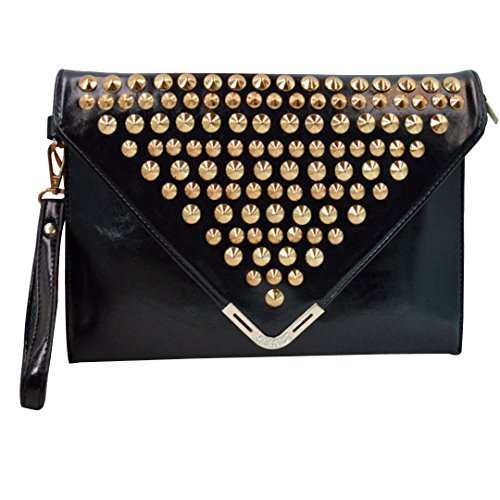 -. Title : Felice Rivets Studded Faux Leather Envelope Handbag Clutch