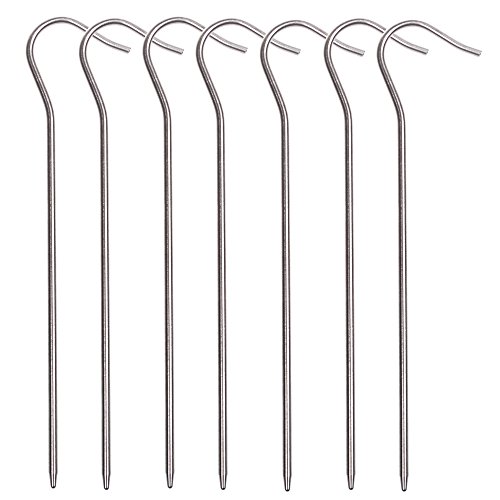 Bluecell Pack of 6 Silver Color Ultra Light Titanium Shepherd's Hook Tent Stake