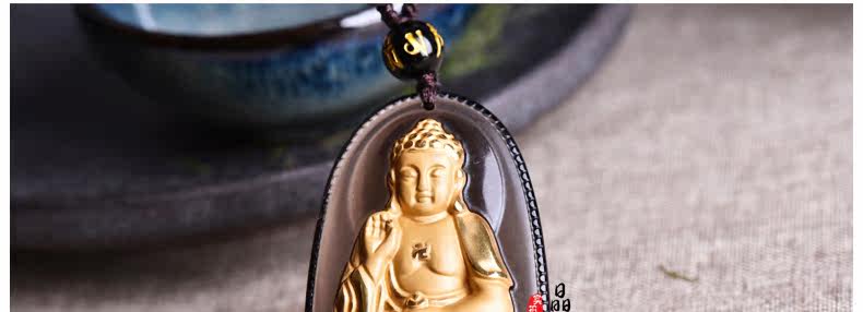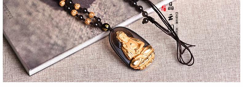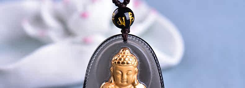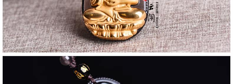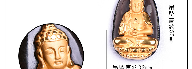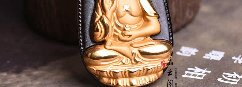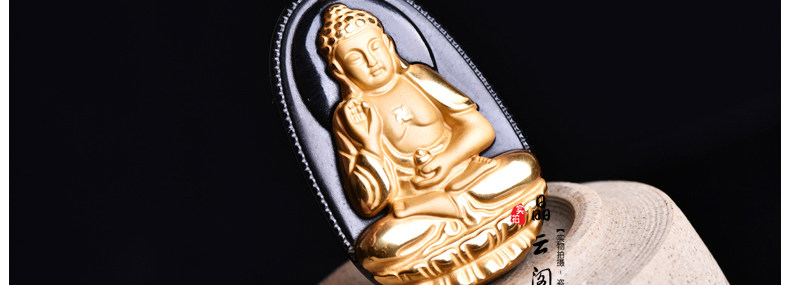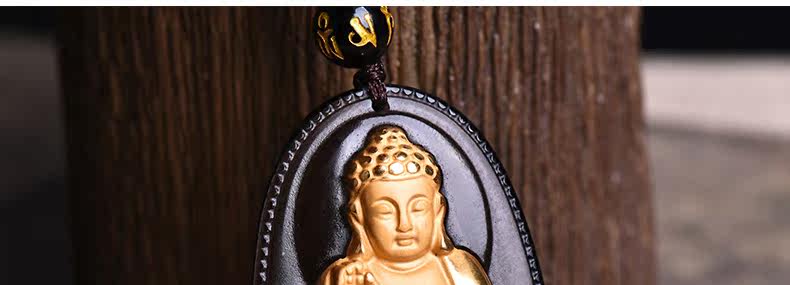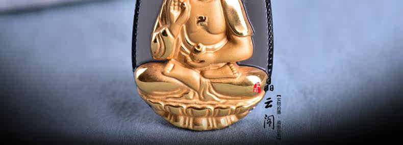 天然冰种黑曜石镶金阿弥陀佛菩萨吊坠 生肖狗猪守护神本命佛项链