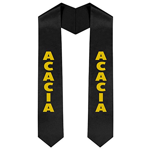 Binding : Apparel Product Description ACACIA fraternity Graduation Sash Stole These Sorority Sashes are made of Bridal satin and measures 5" width 60" length. They come in your choice of colors: Available in black, white, light Grey, pink, salmon pink, red, maroon, purple, gold, navy blue, royal blue and hunter green. Greek letters on left. Custom text on right for year, chapter, etc. 0
