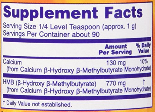 -. Binding : Health and Beauty -. Brand : NOW Foods -. EAN : 0733739020574 -. Feature : Non-GMO / Vegan/Vegetarian / Made witho Gluten -. IsAdultProduct : 0 -. Label : NOW Sports - Nutrition and Wellness -. LegalDisclaimer : These statements have not been evaluated by the Food and Drug Administration (FDA). These products are not meant to diagnose, treat or cure any disease or medical condition. Please consult your doctor before starting any exercise or nutritional supplement program or before using these or any product during pregnancy or if you have a serious medical condition. -. Manufacturer : NOW Sports - Nutrition and Wellness -. MPN : 3057 -. NumberOfItems : 1 -. PackageQuantity : 1 -. PartNumber : 3057 -. ProductGroup : Health and Beauty -. ProductTypeName : HEALTH_PERSONAL_CARE -. PublicationDate : 2017-07-17 -. Publisher : NOW Sports - Nutrition and Wellness -. ReleaseDate : 2017-07-17 -. Size : 90 grams -. Studio : NOW Sports - Nutrition and Wellness -. Title : NOW Foods Hmb Powder, 3.2 Ounce -. UPC : 733739020574
