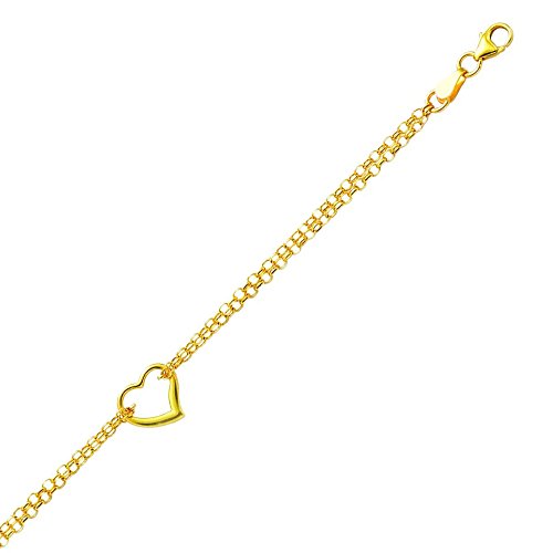 -. Title : 10K Solid Yellow Gold Double Rolo Heart Anklet 3.1mm thick 10 Inches