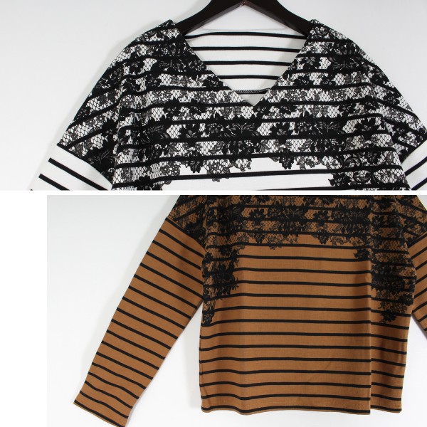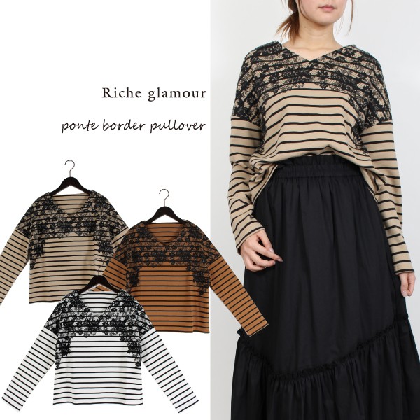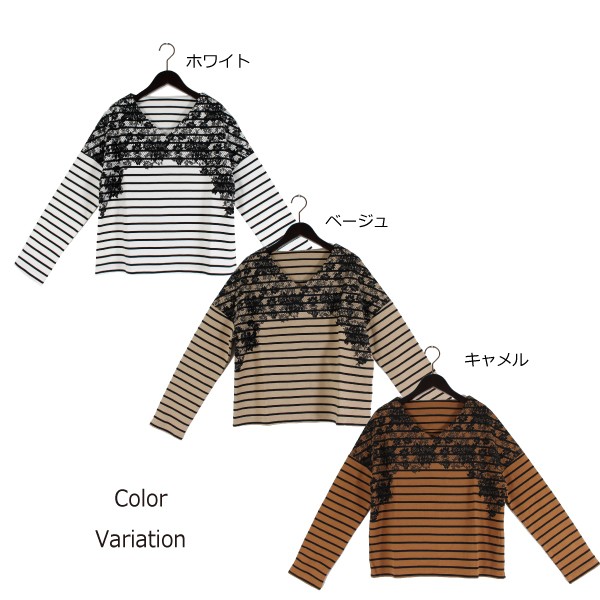 CVCボーダー ポンチ 胸レースプリント入り プルオーバー☆
