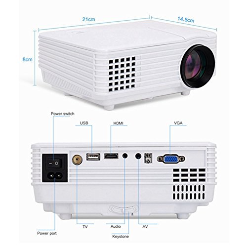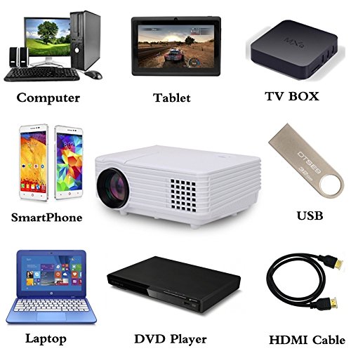- Title : Deeplee Full Color Portable Multimedia Mini Pico LED Projection Micro Home Cinema Theater Projector with USB HDMI VGA AV Speakers for Party, Home Entertainment, Video Games, Movie Night -White