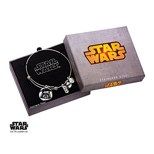 Women's Stainless Steel Star Wars Darth Vader Charm Expandable Bracelet. Licensed Jewelry Box Included. Dimension: 7 1/2" (Length) x 1/16" (Width) x 1/16" (Height).