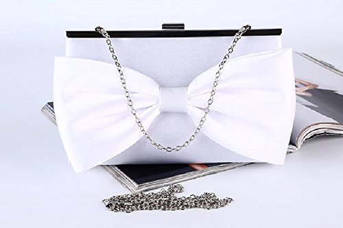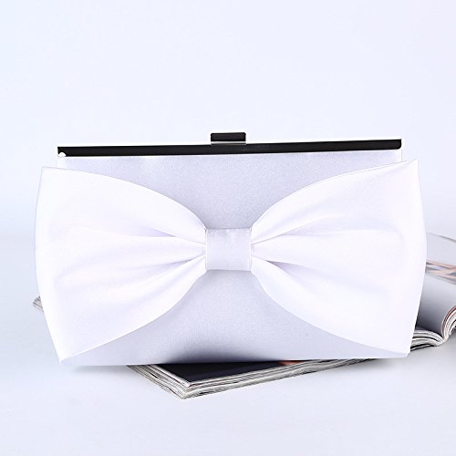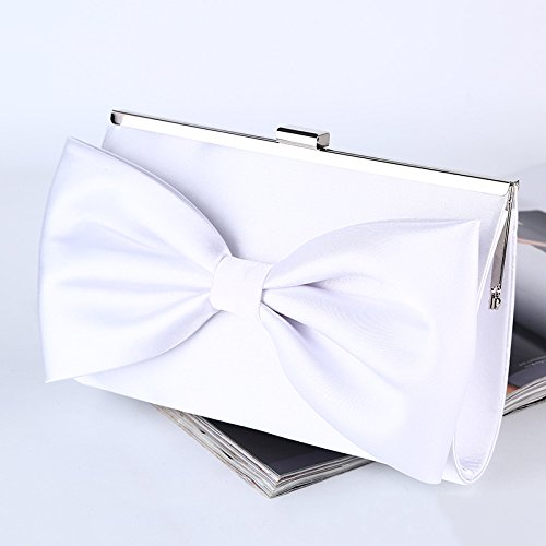 (missfiona)/Accessories/Handbags/DIRECT FROM USA/Missfiona White Bowknot Satin Cocktail Wedding Handbag Purse Evening Clutch Bag 2018