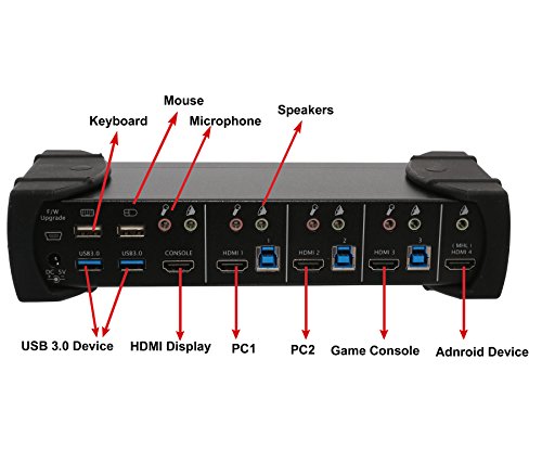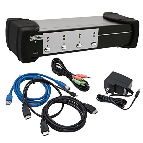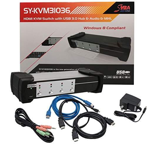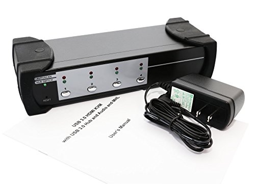 Connects up to 3 PC's and 1 MHL enabled smart phone. Supports up to 1920x1200@60Hz, full HD 1080p display resolution. Easy Plug and Play setup. No software installation required. Made in Taiwan.