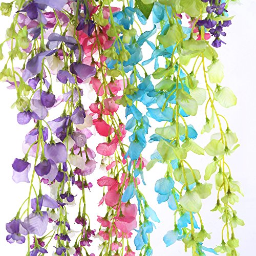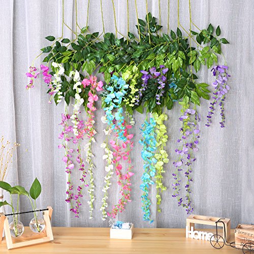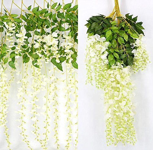 Realistic romantic classic artificial fake wisteria vine ratta silk flowers for garden floral decoration DIY living room hanging flower plant