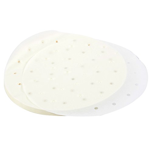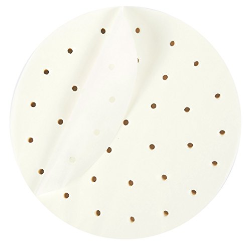 9-INCH STEAMER & AIR FRYER LINERS: These pack of 200 pre-cut parchment paper liners with perforated holes fit 9-inch bamboo steamers and air fryers perfectly! Liners are made of FDA approved parchment paper and can withstand temperatures up to 429 degrees Fahrenheit.