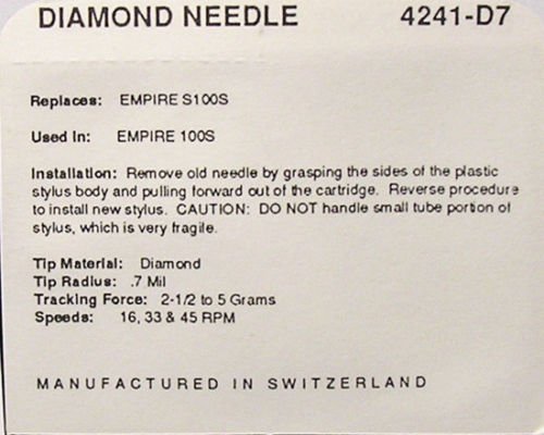 Product DescriptionTURNTABLE STYLUS for EMPIRE LTD 400 LTD 480 LTD 500 LTD 550 580 241-D7 4241-d70