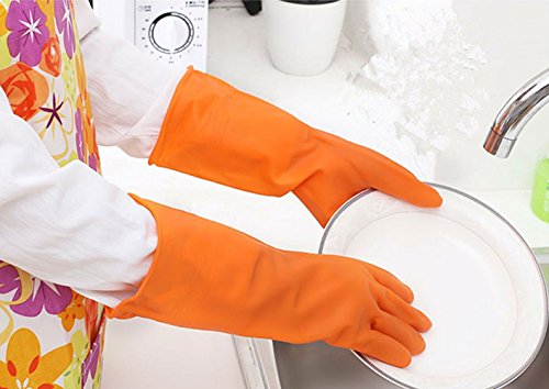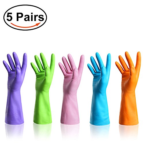 HTLKJ Household Reusable Waterproof Rubber Latex Cleaning Gloves,Kitchen Gloves,Pack of 5 pairs.